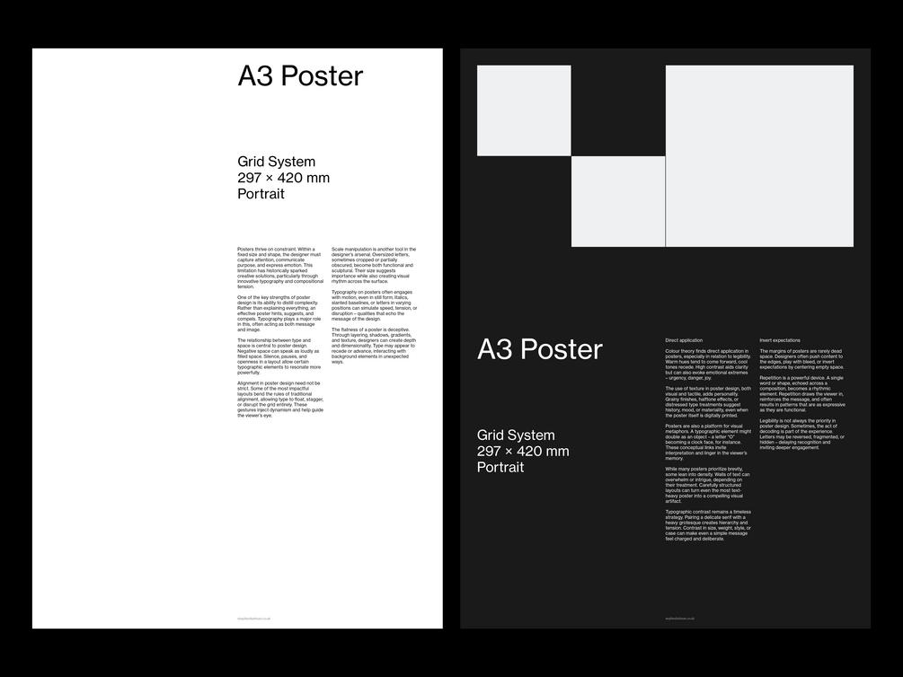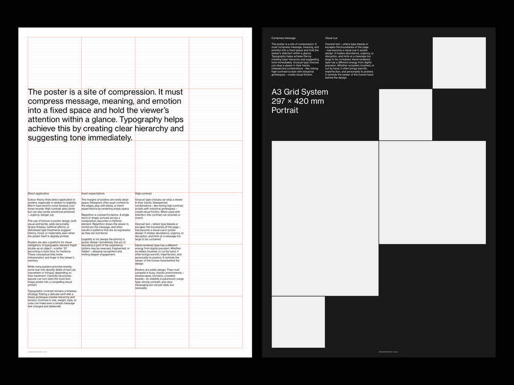 This versatile grid system is designed specifically for A3 printed poster projects.