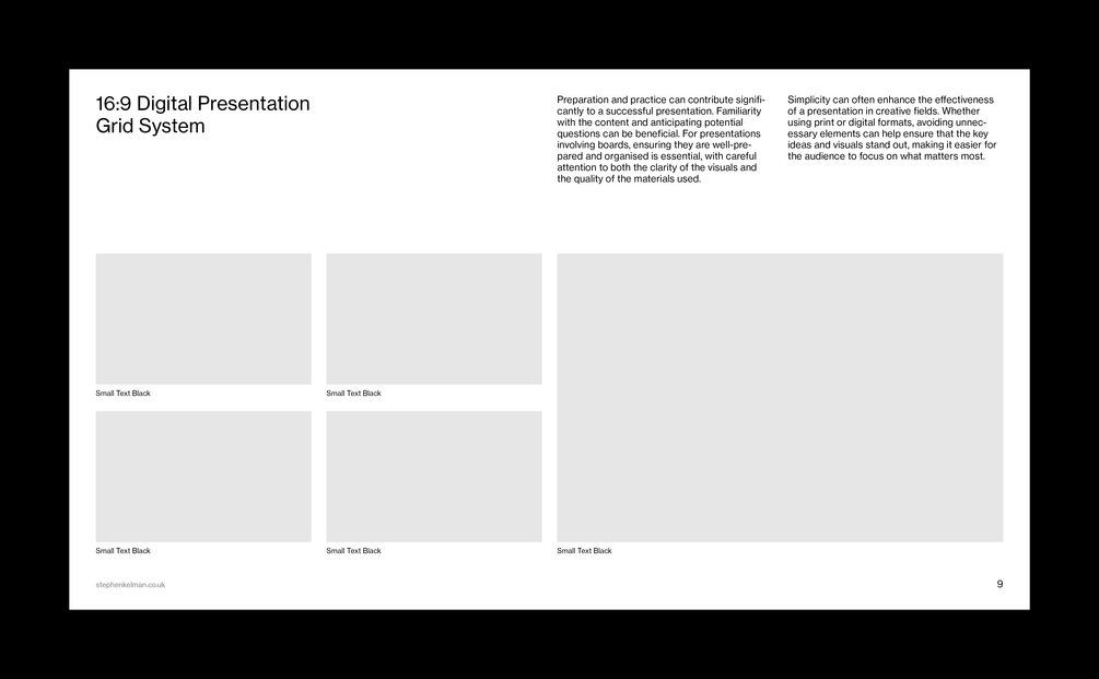Featuring a captions grid and vertical gutters for spacing, this typographic grid system / template has been designed for image-led presentations – perfect for architects, interior designers, 3D visualisers and more.