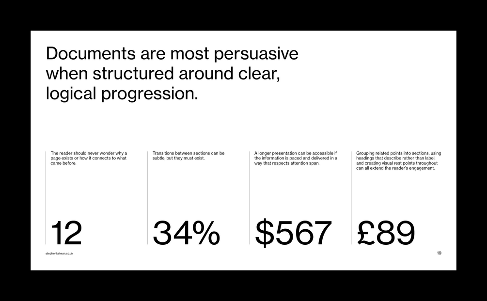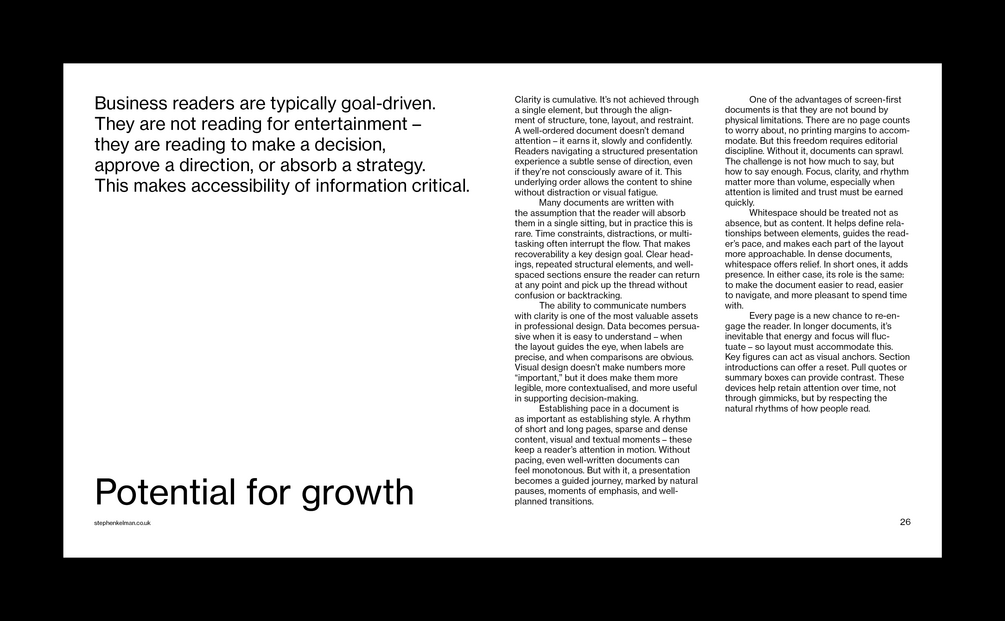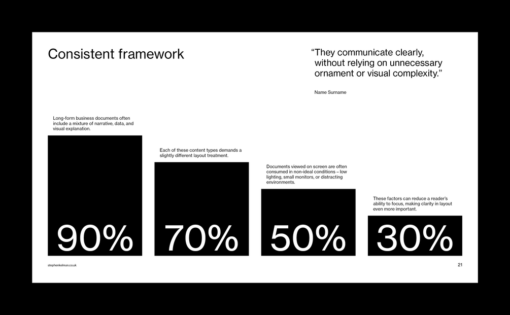 This typographic grid system has been designed for longer-form commercial presentations. Featuring extensive style sheets with a focus on facts, figures and in-depth content, this grid system will suit internal and external business communications – including strategic reports, financial decks or comprehensive investor presentations. For commercial presentations with shorter-form content see the Highlight Presentation Grid System.